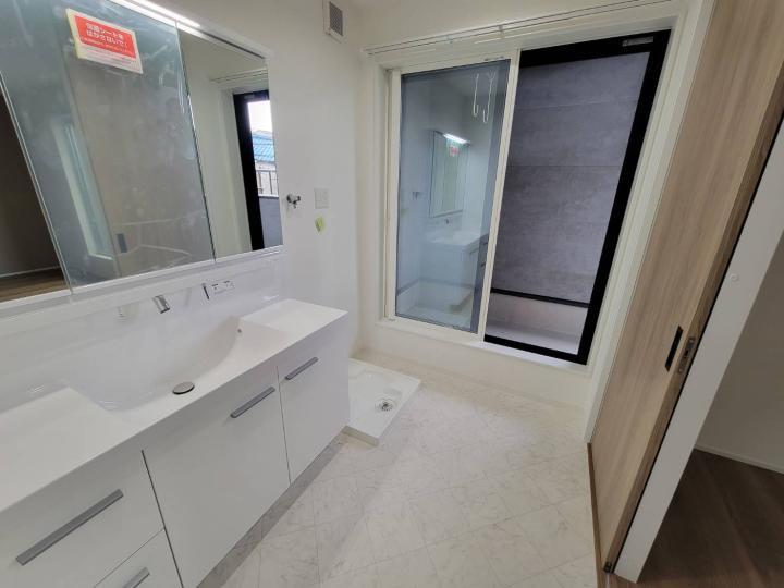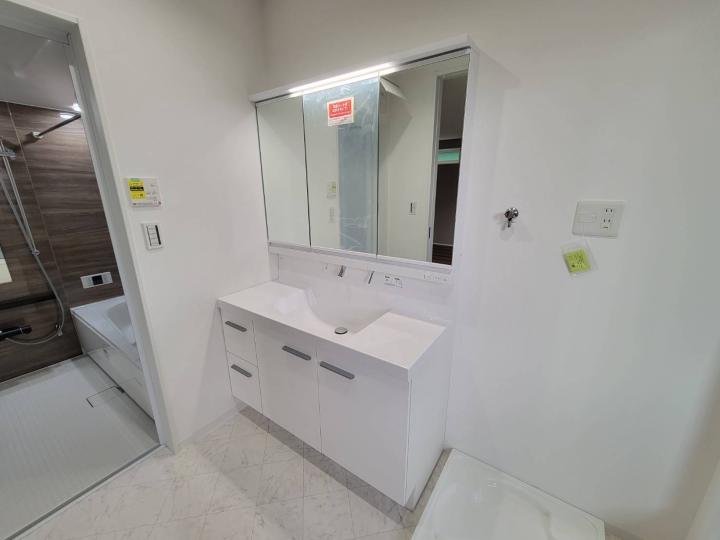 洗面台は、通常より大きなW1200のサイズです。朝の支度もスムーズです。